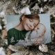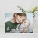 Tarjeta de anuncio de nacimiento de Navidades modernos con tipografía escrita a mano que dice "cuanto más alegre" con el corazón. ¡Esta es una tarjeta de anuncio de nacimiento para las fiestas! ¡Añade tus fotos, estadísticas de nacimiento y un mensaje!