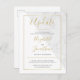 Haga saber a sus amigos y familiares sobre el cambio de planes con estas elegantes tarjetas de anuncio de "Actualización". Ya sea que esté posponiendo su boda y no sepa la nueva fecha o sepa la nueva fecha y desee hacérselo saber lo antes posible, puede personalizar fácilmente estas tarjetas para hacer justo eso. Con un borde de lámina dorada falsa sobre fondo blanco y mármol y una tipografía clásica de escritura y serif.