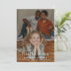 Anuncio de adopción con la frase finalmente en casa escrita en una foto con fuente blanca y un corazón turquesa en lugar de la o. Agrega el nombre de tu nuevo hijo, su cumpleaños y el día que se unió a tu familia.