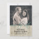 Elegante anuncio de ahorro de fecha de boda rústica, con foto personalizada en la parte superior de la tarjeta, y un aspecto de madera ligera, en la parte inferior de la tarjeta y cubriendo la parte trasera. El texto con fuente gráfica verde menta dice 'ahorra la fecha'. Personaliza con tu foto y texto. Una forma encantadora de anunciar tu próxima boda.