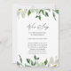 Este simple aviso de aplazamiento de boda botánico en verde salvia y blanco es una forma sencilla y dulce de informar a los invitados que la ceremonia se ha pospuesto debido a eventos imprevistos. Este hermoso diseño presenta elegante letra de caligrafía "lo sentimos", y hojas de acuarela.