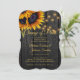 Elegante tarjeta de invitación de cambio de planes, reprogramación, aplazamiento o nueva fecha de boda rústica de verano u otoño en madera de granero marrón oscuro con un hermoso ramo de girasoles y luces de hadas. +++++++++++++ ¡Fácil de personalizar con tus detalles! ++++++++++++ Puedes elegir personalizarla aún más cambiando las fuentes y colores de la letra. ++++++++++++++++ Si necesitas ayuda para personalizarla o hacer algún cambio en el diseño, ¡por favor envíame un mensaje!