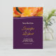Una fotografía floral naranja en un fondo morado, da a esta invitación un toque único y original.