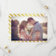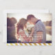 Anuncio de aviso de fecha de boda personalizable con patrón de rayas diagonales doradas.