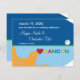 Tarjeta de aviso de fecha moderna y colorida. Perfecta para una boda de destino en Cancun, México. Los colores brillantes dan a esta tarjeta un aspecto tropical. Cuenta con un mapa de México con la palabra Cancun en diferentes colores y un corazón rojo. La tarjeta tiene forma de etiqueta de equipaje para añadir al concepto de boda de destino. Diseño divertido perfecto para una pareja moderna. Agrega el sitio web de la pareja en la parte posterior de la tarjeta. Agrega tu propia redacción.