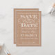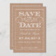 Anuncio de Aviso de Fecha de Rustico Estampado en Arpillera: Utilice estas invitaciones elegantes y vintage para invitar a sus invitados a la boda de sus sueños. Personalice colores, texto y fuente, así como puede agregar sus propias imágenes. ¡Cambie la información del evento para adaptarla a los detalles de su boda!