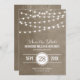 Diseño de anuncio de aviso de boda de verano moderno y chic con sencillas y elegantes luces de cadenas colgando en la parte superior y una mezcla clásica de fuentes modernas y de caligrafía en un fondo de textura de acuarela falsa impresa. Un diseño simple y elegante, perfecto para el verano. Haga clic en el botón PERSONALIZAR para personalizar las fuentes, mover el texto y crear un diseño de invitación único.