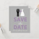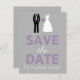 Anuncio de Aviso de Traje de Boda y Esmoquin en púrpura. Anuncie su próxima ceremonia de boda de una manera linda y clásica utilizando este adorable vestido de novia y esmoquin. Esta tarjeta de aviso está llena de estilo chic y divertido