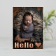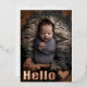Presentamos nuestra elegante tarjeta postal de anuncio de nacimiento "hola" para bebé. Una plantilla moderna que te permite personalizar con 11 de tus fotos favoritas de tu nuevo bebé. En la parte delantera de esta tarjeta hay espacio para una imagen completa con tipografía de lámina de oro rosa real. En el reverso hay espacio para 10 fotos adicionales. Personaliza con tu propio texto y nombres para completar este elegante y sofisticado recuerdo que tu familia y amigos atesorarán durante años.