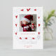 Una plantilla de tarjeta de anuncio de bebé moderna y dulce con un tema de follaje invernal, que presenta un marco botánico cuadrado caprichoso y dibujado a mano de bayas invernales y corazones rojos, sobre la plantilla de foto en la parte frontal y el título "feliz y bendito" en lámina de oro real.