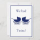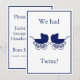 Anuncio de bebé de gemelos retro azul