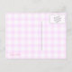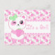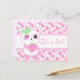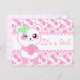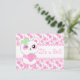 Un panda rosa muy lindo y kawaii que sostiene una fresa, en el fondo un patrón de fresa. en una tarjeta postal que anuncia la llegada de una niña. haga clic en personalizar para agregar texto en la parte posterior si lo desea
