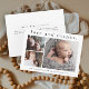 Un dulce anuncio de nacimiento con collage de 3 fotos y tarjeta de nota de agradecimiento con un tipo simple moderno y 3 imágenes en la parte frontal. La parte trasera es una postal con un encabezado de nombre completo grande y un mensaje personal de la familia. Haga clic en el botón de edición para personalizar este diseño con sus fotos y detalles.