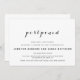 Para parejas que desean un diseño de boda simple pero elegante. Elke Clarke © El diseño incluye los nombres de la novia y el novio en una fuente de escritura elegante con la palabra "aplazada". Mostrado en negro y blanco pero se puede personalizar según los colores de su boda para el texto y el fondo. Agregue otros gráficos, fotos o monogramas para personalizar esta plantilla.