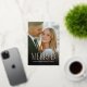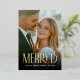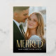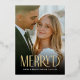 Nuestra tarjeta de anuncio de boda con foto de vacaciones con lámina dorada Merry'd Modern combina perfectamente la magia de tu día de boda con el espíritu festivo de la temporada navideña. ¡Una forma única de compartir tus noticias alegres durante el momento más alegre del año! Esta tarjeta presenta una impresionante foto de página completa de tu día de boda y tipografía moderna con lámina dorada. Un delicioso juego de palabras combina "Merry" de las fiestas con "Married" de tu alegre matrimonio, lo que hace que este diseño sea un anuncio perfecto de tu estado de recién casados durante este mágico momento del año. El reverso presenta una segunda foto y texto adicional de tu elección. Celebra la magia de tu boda y la temporada navideña con nuestra tarjeta de vacaciones con foto y lámina dorada de anuncio de boda Merry'd. Ya sea que estés compartiendo tu historia de amor, conmemorando tu día especial o simplemente difundiendo la alegría de la temporada navideña con seres queridos, esta tarjeta es la elección perfecta para hacer que tus saludos navideños sean verdaderamente memorables. ¡Ordena la tuya hoy y haz