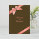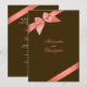 Diseño de cinta roja coral sobre fondo de chocolate. 5" x 7" Elegante, totalmente personalizable para usar en invitaciones de boda, save-the-date, anuncio, rsvp, tarjeta para bodas, fiestas, ducha de novia, compromiso y cualquier otra ocasión especial.