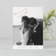 Este simple anuncio de boda de elopement luce moderno y elegante. Cuenta con fotos en blanco y negro de la pareja, letra manuscrita con hoja real (disponibles colores dorado, plateado y bronce) "Ahora estamos casados" y los nombres de la pareja. Esta tarjeta de elopement a doble cara es fácil de personalizar con las fotos de la futura novia y el novio, nombres y mensajes personalizados.