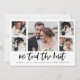 Este simple anuncio de boda en blanco y negro presenta tipografía moderna e informal que dice "nos casamos", con una cuadrícula de varias fotos en la parte frontal y una más en la parte posterior. Una forma elegante de informar a amigos y familiares sobre su fuga o que simplemente están casados.
