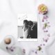 Este simple anuncio de boda de fuga con foto parece moderno y elegante. Cuenta con fotos en blanco y negro de la pareja, letras de escritura a mano con hoja real (disponibles en colores dorado, plateado y bronce) que dicen "Ahora estamos casados" y los nombres de la pareja. Esta tarjeta de fuga a doble cara es fácil de personalizar con las fotos de la futura novia y el futuro novio, sus nombres y mensajes personalizados.