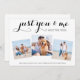 ¡Solo tú y yo y el perro! Haz que tu mejor perro anuncie el cambio de planes de tu boda con esta tarjeta de anuncio de boda de perro súper linda 'Solo tú y yo y el perro' con un collage de 3 fotos. Ya sea que decidas fugarte, tener una boda micro o una pequeña reunión familiar, estas tarjetas son perfectas para enviar a familiares y amigos para darles una actualización de la boda y hacerles saber sobre el cambio de planes de la boda reducida. Personaliza con tu foto favorita y personaliza con nombres y detalles en el reverso. Este anuncio de boda de perro será un éxito con tus familiares y amigos. DERECHOS DE AUTOR © 2020 Judy Burrows, Black Dog Art - Todos los derechos reservados. Anuncio de boda reducida de boda micro de perro.