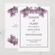 Anuncio de Boda de Retraso de Ramo Floral en una elegante fuente de escritura de lavanda oscura junto con su mensaje. Todo rodeado por un borde delgado de lavanda oscura.