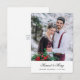 Una maravillosa foto de boda de la novia y el novio, y un hermoso texto festivo blanco. Las características de esta tarjeta se pueden personalizar.