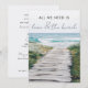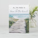 Anuncio de boda en la playa de Nueva Inglaterra e invitación a la recepción para la pareja que se casó en una playa de Nueva Inglaterra. La parte delantera dice: Todo lo que necesitamos es amor y la playa. Agregue los detalles de su boda y recepción en el reverso e invite a familiares y amigos a celebrar con usted.