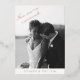 Este simple anuncio de boda con foto de fuga de novios parece moderno y elegante. Características fotos en blanco y negro de la pareja, letra manuscrita con lámina real (disponibles colores dorado, plateado y bronce) "Ahora estamos casados" y nombres de la pareja. Esta tarjeta de fuga de novios a doble cara es fácil de personalizar con las fotos de la futura novia y el futuro novio, sus nombres y mensajes personalizados.