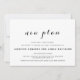 Para parejas que desean un diseño de boda simple pero elegante. Elke Clarke © El diseño incluye los nombres de la novia y el novio en una fuente de escritura elegante con las palabras "nuevo plan". Se muestra en negro y blanco, pero se puede personalizar según los colores de su boda para el texto y el fondo. Agregue otros gráficos, fotos o monogramas para personalizar esta plantilla.