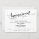 La distinción de este conjunto se debe a la elaborada fuente de escritura giratoria utilizada para las frases de acento. En el caso de que necesite informar a sus invitados que su boda se ha pospuesto, esta tarjeta ofrece una opción elegante. En esta pieza, se utilizó la fuente de caligrafía para crear un gráfico que representa la palabra "Anuncio". Utilice los campos del plantilla para agregar sus datos personales y hacer que este diseño sea suyo. El fondo se puede cambiar a cualquier color que prefiera. Por favor, comuníquese con nosotros para cualquier solicitud especial o para obtener ayuda para personalizar. // 98 //