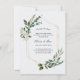 Envía un anuncio a familiares y amigos para informarles que la fecha de tu boda ha cambiado. Tarjeta con ilustración de vegetación en acuarela con un marco geométrico dorado. Personaliza con tu información o haz clic en "Haz clic para personalizar más" para editar estilos de fuente, tamaño y colores.