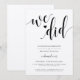 Esta invitación presenta "nos casamos" en una escritura romántica para la manera perfecta de decirle a amigos y familiares que se unieron en matrimonio.