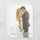 Este elegante anuncio de boda también sirve como invitación para la recepción. La invitación para la recepción de doble cara presenta "Felices para siempre" en letras de pan de oro falsas y texto que anuncia el matrimonio de los recién casados y los invita a una recepción de boda informal. Personalice con su foto.