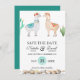 Tarjeta de anuncio de bodas de pareja de llama Save the Date.