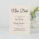 Aquí tienes una sencilla tarjeta para notificar a tus invitados si ha sido necesario cambiar la fecha de tu boda. Utiliza los campos del modelo para añadir tus datos personales y hacer tuyo este elegante diseño minimalista. El fondo blanco se puede cambiar a cualquier color que prefieras. Todas las fuentes y colores también son editables. Por favor, no dudes en hacérnoslo saber si tienes alguna petición especial o necesitas ayuda para personalizarla. Otras piezas con textos alternativos están disponibles en la colección.