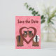 Anuncio de Boda de Caballos Adorables con un Corazón Rojo y Fondos Rosados para Guardar la Fecha. Este aviso de guardar la fecha es ideal para cualquier época del año y perfecto para Anuncios de Boda en el Día de San Valentín.