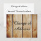 Esta es una tarjeta postal retro de cambio de dirección de madera. La característica de esta postal es la frase "Tenemos una nueva dirección" escrita en elegante fondo encalado blanco. Agrega tu nueva dirección al dorso de la tarjeta postal. Puedes personalizar con tu nueva dirección.