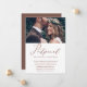 Elegante anuncio de aplazamiento de la boda. Este simple anuncio es una forma elegante de informar a los invitados que la fecha de su boda ha sido reprogramada debido a circunstancias imprevistas, e incluye la nueva fecha de la boda. Este anuncio de moda presenta una hermosa caligrafía de "aplazado" en cobre falso sobre un fondo blanco con la foto de la pareja, y el dorso de la tarjeta en marrón cobre.