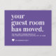 Su habitación de huéspedes se ha mudado Anuncio de cambio con una tipografía y fuente modernas y un corazón.