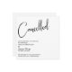 Si estás en la posición de necesitar informar a tus invitados que tu boda ha sido cancelada, aquí tienes una opción simple y elegante. En este diseño, se utilizó la fuente de escritura moderna y elaborada para crear un gráfico simple y bonito que representa la palabra "Cancelado". (Hay otra versión creada con esta fuente que presenta la ortografía alternativa, si te parece mejor.) Utiliza los campos del plantilla para agregar tus datos personales y hacer que este diseño moderno sea tuyo. El fondo blanco se puede cambiar a cualquier color que prefieras. Todas las capas se agregaron por separado y se dejaron desbloqueadas para ofrecerte la mayor cantidad de control de diseño. Por favor, comunícate con nosotros para cualquier solicitud especial o para obtener ayuda para personalizar. // 32 //