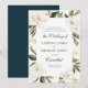 Este diseño presenta un marco floral con flores de magnolia y texto en el medio. El dorso azul marino complementa bien las flores de acuarela y el follaje verde. El texto y el color se pueden cambiar.
