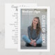 Anuncio de graduación con tu foto en un fondo blanco liso (el texto y el fondo son totalmente personalizables para que lo hagas tuyo). Agrega tu nombre, escuela y fecha de graduación en la parte frontal. La parte trasera de la tarjeta está llena de información sobre tus años de escuela secundaria, tus logros y tus planes para el futuro.