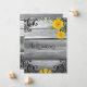Boda perfecta rústica formal o de campo: madera de granero gris desgastada con una variedad de girasoles amarillos brillantes en papelería de boda a juego para una colección de boda completa. Acentuado con encaje negro vibrante, este es un look muy único y de moda para un look campestre chic formal, ideal para la boda de campo romántica a la antigua. NOTA: Este producto de papel no tiene madera real, flores o encaje, estos son diseñados artísticamente para parecer reales.