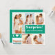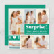 A todos les encantará ver tus fotos de compromiso. Este anuncio de compromiso de collage de 6 fotos te da una gran oportunidad para mostrarlas. Los dos cuadrados esmeralda verde contienen tu texto. Todo el texto blanco se puede editar para crear tu toque único. Agregué un juguetón ¡Sorpresa! Luego dos líneas de texto en el cuadrado grande en el más pequeño inserté tus monogramas separados por un corazón.