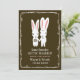 Adorables conejos blancos con orejas rosadas largas, novia y novio tomados de la mano. Un divertido anuncio de compromiso para los futuros Sr. y Sra. Personaliza esta original invitación de boda con el nombre de la feliz pareja y la fecha de la boda. Elige entre una variedad de tipos de papel. Visita Jenn's Doodle World para obtener aún más productos de planificación de bodas con este diseño de conejitos y más invitaciones de tema de animales lindos para bodas.