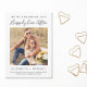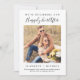 Anuncio de compromiso moderno con su foto y "Estamos comenzando nuestro feliz para siempre" en una mezcla de tipografía minimalista y una escritura elegante. Personalice con sus primeros nombres y un mensaje de anuncio de compromiso personalizado, como si debe estar atento a la fecha de la boda.