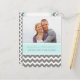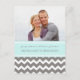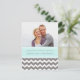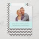 Tarjetas postales de anuncio de compromiso en elegante turquesa azul pastel claro, zigzags de chevron retro grises y blancos con patrón vintage, personalizables con sus nombres, la forma perfecta de anunciar su compromiso a amigos y familiares. Disponible en una amplia gama de productos de boda a juego.