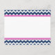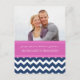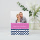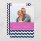 Tarjetas postales de anuncio de compromiso en elegante azul marino oscuro, rosa intenso fucsia y blanco con zigzags de chevron retro vintage, personalizables con sus nombres, la forma perfecta de anunciar su compromiso a amigos y familiares. Disponible en una amplia gama de productos de boda a juego.