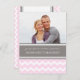 Tarjetas postales de anuncio de compromiso en elegante rosa blush pastel claro, zigzags de chevron retro gris y blanco, patrón vintage, personalizables con sus nombres, la forma perfecta de anunciar su compromiso a amigos y familiares. Disponible en una amplia gama de productos de boda a juego.