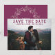 Agregue la foto de su pareja favorita a esta tarjeta de anuncio de boda con foto de fecha de reserva. Para personalizar, simplemente inserte su imagen en nuestra plantilla, reemplazando la muestra. Haga clic en: RELLENAR para cubrir la parte frontal. A continuación, agregue su texto en la plantilla: Nombres de la novia y el novio y fecha de la boda. El texto del reverso incluye: Invitación a seguir, rodeado de una suave corona floral. Los colores se pueden cambiar usando nuestra herramienta de selector de colores.